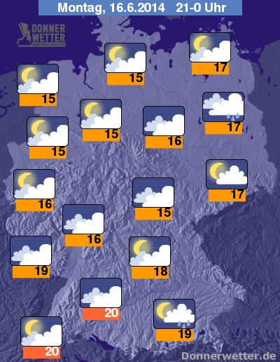 Am Abend ist vor allem im Nordosten hier und dort noch ein Schauer möglich, sonst ist es aber ein wettertechnisch ruhiger und trockener Abend. Bei 20 Grad im Breisgau und etwa 15 Grad im Norddeutschen Tiefland ist es insgesamt mild.