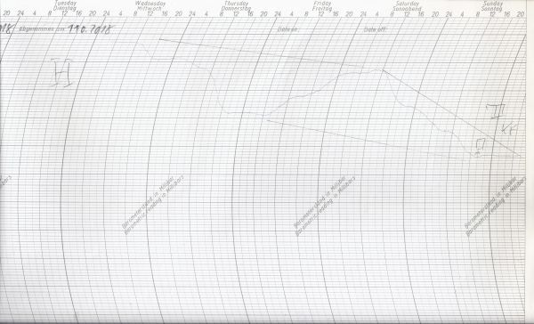 Unser Schrieb zeigt den Luftdruckverlauf der letzten Tage an unserer Wetterstation in Bonn.