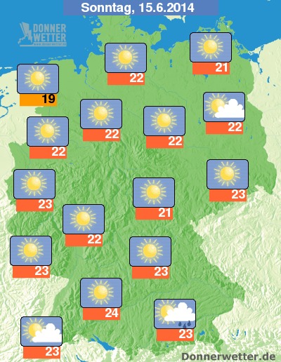 Der heutige Sonntag wird für fast alle von uns ein herrlicher Sommertag. Nur im Südosten könnte es hier und da einen Schauer oder ein leichtes Gewitter geben, ansonsten scheint die Sonne aber von einem vielfach wolkenfreien Himmel und es bleibt trocken. Die Temperaturen bewegen sich auf frühsommerlichen Werten zwischen 19 Grad im Emsland und etwa 24 Grad in Baden-Baden.