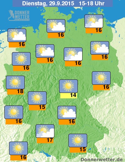 Heute Nachmittag können vor allem im Norden zeitweise einige, gebietsweise auch mal etwas dichtere Wolken durchziehen. Im übrigen Bundesgebiet ist es hingegen überwiegend sonnig und es ziehen nur hier und da auch mal mehr Wolken durch. Es bleibt landesweit trocken. Die Temperatur steigt auf 14 Grad im Eichsfeld und bis 18 Grad in Köln.