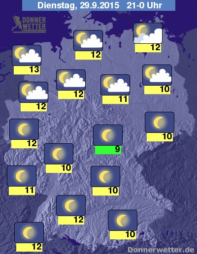 Heute Abend ziehen nach Norden hin weiterhin einige, meist aber nur lockere Wolkenfelder durch, sonst zeigt sich der Himmel über dem Land aber verbreitet sternenklar. Es bleibt überall trocken bei Abendwerten von 13 Grad in Ostfriesland und etwa 9 Grad im Grabfeld.