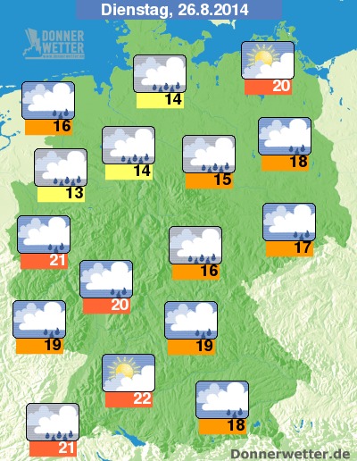 Pendeln sich die Temperaturen in Ostseenähe und im Schwarzwald auf Werte um die 20-Grad-Marke ein, werden im Rest des Landes nur sehr, sehr spätsommerliche bis herbstliche 13 bis 18 Grad C erreicht.