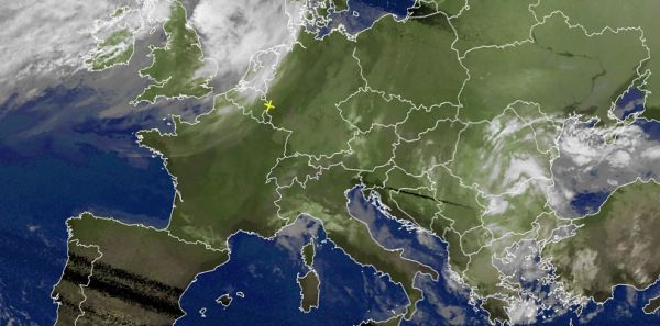 Das Satellitenbild zeigt Wolken über Norddeutschland. Diese bringen warme Luft mit. Im Süden ist teilweise Hochnebel zu sehen.