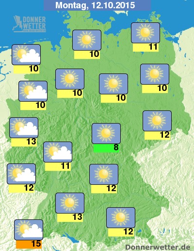 Am Sonntag im Norden und Westen meist heiter bis sonnig und trocken, im Süden und Osten meist stark bewölkt, im Süden zeitweise Regen, sonst weitgehend trocken, 6 bis 12 Grad.
