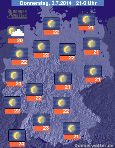 Auch in der Nacht bleibt uns der klare Himmel weitestgehend erhalten. Nur im Küstenumfeld und im Südwesten Deutschlands können gebietsweise ein paar Wolken durchziehen. Bei Tiefstwerten von 15 Grad in Dresden und 9 Grad im Westerwald bleibt es überall trocken.
