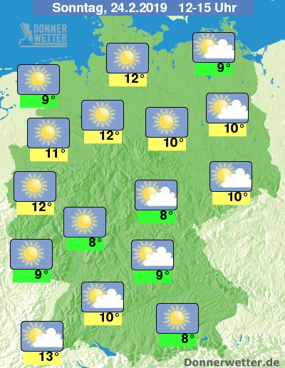 Heute Nachmittag erwartet uns verbreitet heiteres oder sonniges Wetter, dabei bleibt es trocken. Die Temperatur liegt oft im vorfrühlingshaften Bereich zwischen 9 Grad an der Ostsee und bis 13 Grad entlang des Rheins.