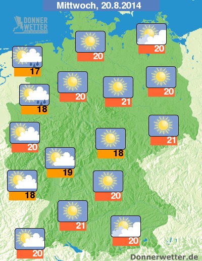Heute ist es zunächst verbreitet heiter und besonders im Süden und Osten auch häufig sonnig, am Nachmittag ziehen besonders im Westen und Nordwesten teils dichte Wolken auf und es können sich einzelne Schauer, vereinzelt auch Gewitter entwickeln, weiter nach Süden und Osten bleibt es aber weitgehend trocken. Die Temperatur steigt auf etwa 17 Grad in Ostfriesland und 21 Grad in Magdeburg.