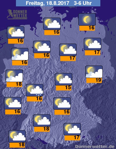 Bis in die frühen Morgenstunden fallen die Temperaturen auf milde Tiefstwerte zwischen 15 und 20 Grad.