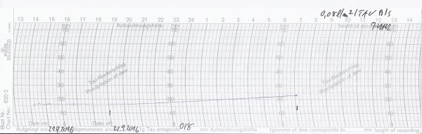 Auf Temperaturen von teils deutlich unter 10 °C sanken die Werte in der vergangenen Nacht. Auch unser Tauschreiber ist nun im Herbst angekommen, bis 7 Uhr morgens verzeichnete er 0,08 l/m²: