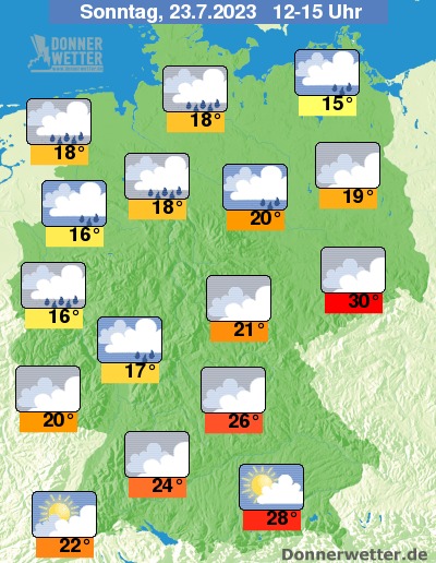 Heute Nachmittag ist es im Süden noch teilweise heiter, teils ziehen auch schon einige Wolken durch, aber es bleibt trocken. Im übrigen Land ziehen von Nordwesten her dichte Wolken auf und nachfolgend fällt zeitweise Regen. Die Temperatur liegt bei kühlen 15 Grad an der Müritz und bis 30 Grad in Dresden.