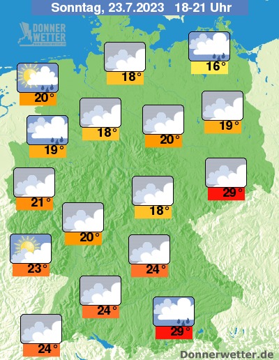 Heute Abend zieht überwiegend starke Bewölkung durch, dazwischen kann es hier und da auch mal ein wenig auflockern. An den Küsten im Nordwesten sowie an den Alpen bilden gebietsweise Schauer, sonst bleibt es meist trocken. Die Temperatur liegt bei 16 Grad in Rostock und bis 29 Grad in München.