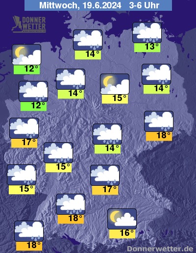 Die Temperaturen gehen in den frühen Morgenstunden zurück auf Werte um 18 Grad am Oberrhein und 12 Grad im Emsland.