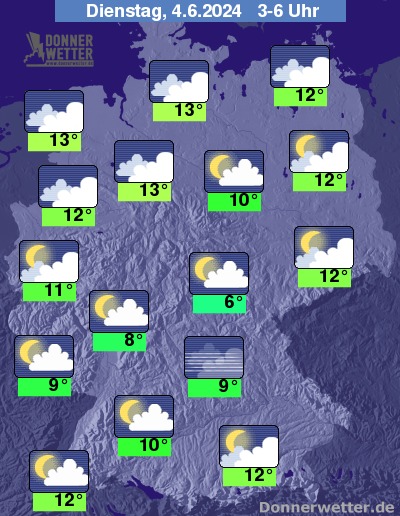 Die Temperaturen gehen in den frühen Morgenstunden auf Werte um 13 bis 6 Grad zurück.