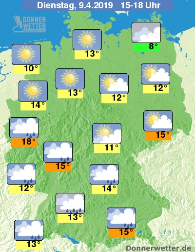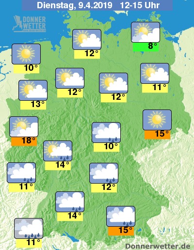 Die Temperaturen liegen meistens zwischen 11 und 15 Grad, kühler bleibt es bei auflandigem Wind an der Ostsee, milder wird es im Westen.