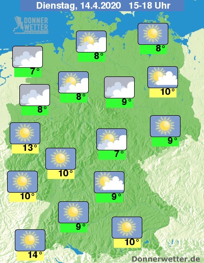 Am frühen Nachmittag halten sich im Nordwesten zum Teil dichtere Wolkenfelder. Regen fällt jedoch kaum. In den anderen Landesteilen gibt es eine freundliche Mischung aus Sonne und meist nur lockeren Wolken, im Südwesten scheint die Sonne auch für längere Zeit von einem blauen Himmel.