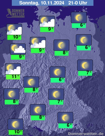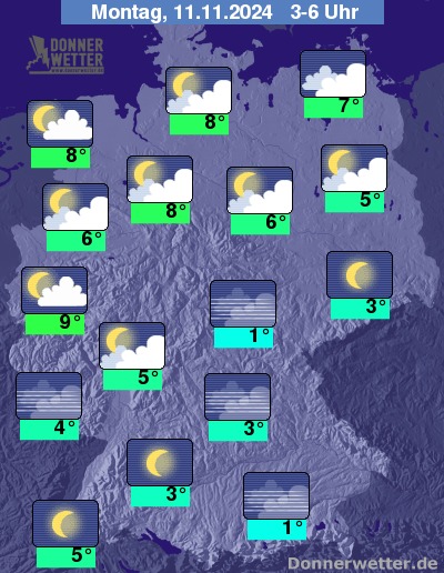 Die Temperaturen gehen in den frühen Morgenstunden zurück auf Werte um 9 bis 1 Grad.