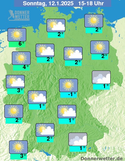 Am Sonntagnachmittag zeigt sich der Himmel häufig wechselnd, vor allem in der Südosthälfte auch stark bewölkt. Längere Zeit sonnig ist es am Nachmittag vor allem in den nördlichen Landesteilen. Dabei bleibt es trocken.