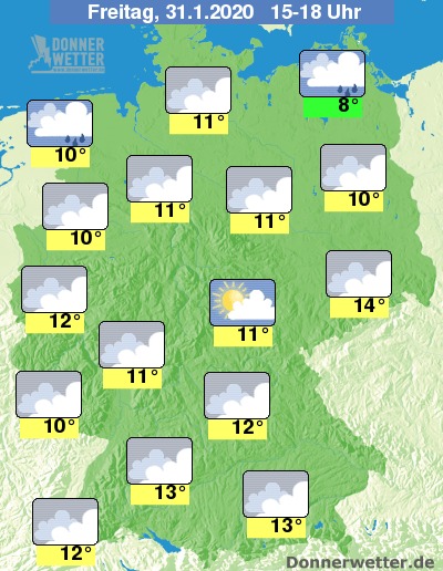 Bis zum frühen Abend fällt an den Küsten von Nord- und Ostsee, sowie über Schleswig-Holstein zeitweise Regen. Im übrigen Land bleibt es abgesehen von etwas Sprühregen trocken. Wolkenauflockerungen treten jedoch nur selten auf.