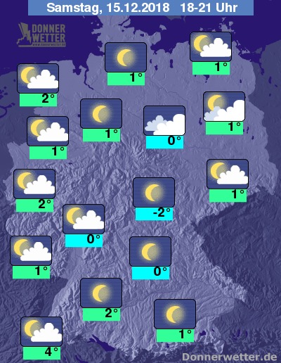 Heute Abend nimmt die Bewölkung westlich des Rheins zu, dazu bleibt es aber noch trocken. Im übrigen Bundesgebiet ist es meist locker bewölkt oder sternenklar, teils aber auch trüb, dazu bleibt es trocken.  Die Temperatur liegt bei -2 Grad im Eichsfeld und bis 4 Grad in Freiburg.