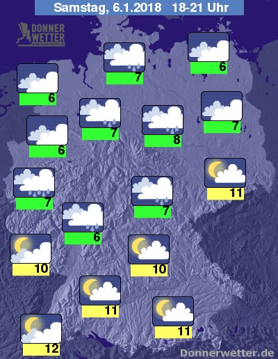 In der Nacht zum Sonntag verdichten sich die Wolken auch im Süden, dazu bleibt es aber trocken. Im übrigen Land bleibt es weiterhin bedeckt und es fällt gebietsweise Regen, gegen Morgen im Norden teils auch Schneeregen oder Schnee, dazu besteht stellenweise Glättegefahr! Die Temperatur sinkt auf 8 Grad im Breisgau und bis 1 Grad in Vorpommern.