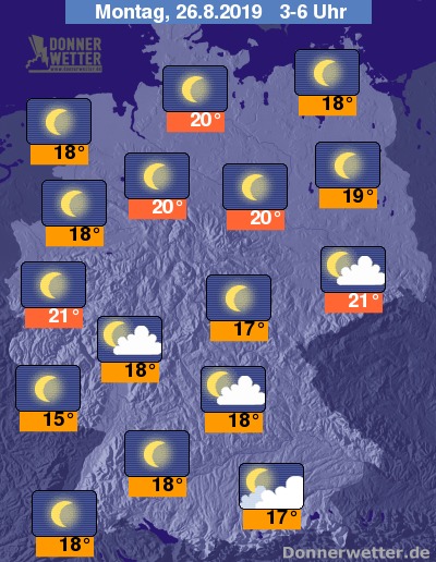 In der folgenden Nacht klingen letzte Schauer und Gewitter meist rasch ab und der Himmel klart verbreitet auf. Hier und da halten sich bis zum Morgen auch noch einige Wolken. Die Temperatur sinkt auf tropische 21 Grad in Köln und bis 15 Grad im Saargau.