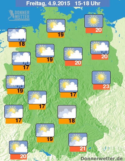 Heute Nachmittag ist es meist heiter oder wechselnd bewölkt, vor allem im Osten und in der Landesmitte auch oft sonnig und dazu trocken. Vom Westen bis in den Nordwesten und auch im östlichen Brandenburg ziehen jedoch auch teils dichte Wolken durch, die zu Schauern, an der Nordsee auch zu Gewittern führen können. Im übrigen Land bleibt es jedoch weitgehend trocken. Die Temperatur steigt auf 17 Grad im Saarland und bis auf 23 Grad in Dresden.