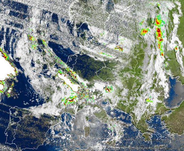 Auf dem Satellitenfoto von heute Morgen zeigen sich weite Teile Deutschlands wolkenfrei. Ein kleines Tief über Frankreich brachte hier und auch im Südwesten und äußeren Süden Deutschlands oft dichte Wolken und zeitweilige Schauer, zudem waren auch örtliche Gewitter mit dabei.