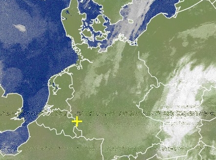 Das Satellitenbild zeigt den Tiefdruckwirbel über Österreich und Tschechien, der auch in Deutschland für Schauer und Gewitter sorgt. Mehr zu den Satellitenbildern finden Sie hier.