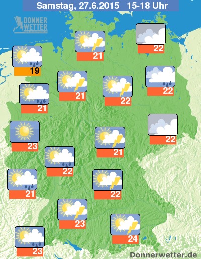 Heute Nachmittag zieht verbreitet noch wechselnde bis starke Bewölkung durch und es bilden sich häufig Schauer und zum Teil kräftige Gewitter. Von Westen her lockert die Bewölkung jedoch schon wieder auf und Schauer und Gewitter klingen ab. Die Temperatur steigt auf 19 Grad an der Nordsee und bis 24 Grad in München.