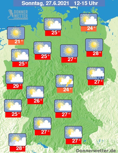 Heute Nachmittag ist es überwiegend heiter oder sonnig, allerdings ziehen hier und da auch einige, teils dichte Quellwolken durch. Das Schauer- und Gewitterrisiko bleibt insgesamt noch niedrig. Die Temperatur steigt auf 21 Grad an der Nordsee und bis 29 Grad im Rheinland.