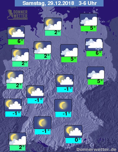 Der Samstag spaltet sich ein wenig, denn während im Norden der Regen dominiert, zeigt sich im Süden die Sonne. Die Temperaturen klettern auf 10 Grad C im Ostfriesland und 6 Grad C in Oberbayern.