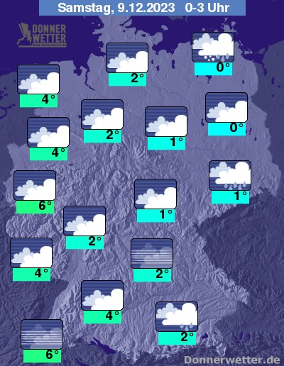 Am späten Abend und in der Nacht fällt meist nur noch in der Osthälfte etwas Schnee oder gefrierender Regen, auch am Alpenrand sind zeitweise Niederschläge möglich. In den übrigen Landesteilen bleibt es bei einer meist geschlossenen Wolkendecke überwiegend trocken.