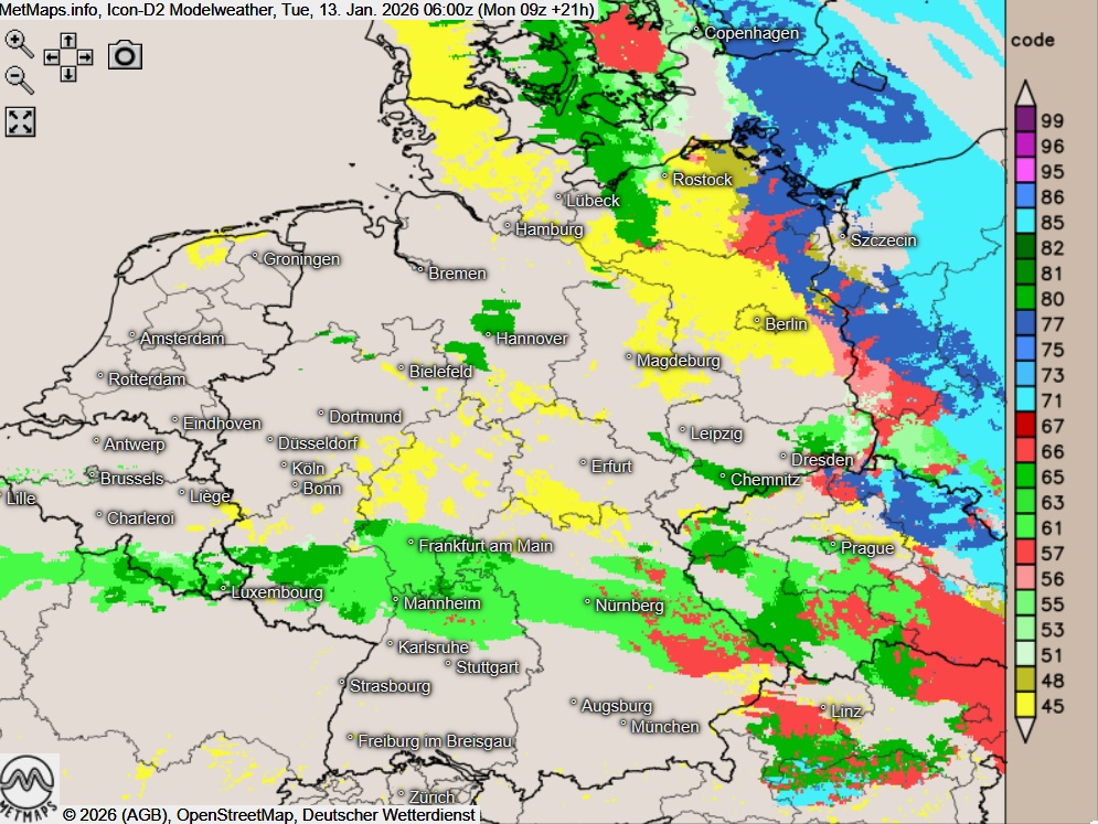 Während in weiten Landesteilen bei Plusgraden keine Glättegefahr mehr droht, bleibt die Wettersituation in der Osthälfte in kälterer Luft auch über den Abend und die Nacht bis in den Dienstagmorgen angespannt.