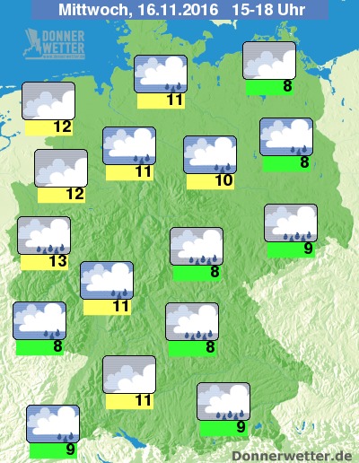 Am Nachmittag und in Richtung Abend Richtung Südosten viel Regen. Auch in weiten Teilen Deutschlands ist immer wieder mit Schauern zu rechnen. Der Himmel bleibt grau und weiterhin bedeckt.