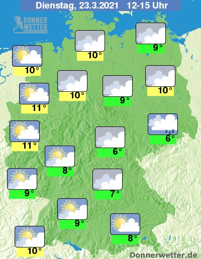 Heute Nachmittag zeigt sich das Wetter überwiegend stark, im Westen und Süden zum Teil auch gering bis aufgelockert bewölkt. In Sachsen und Nordostbayern fällt regional Schnee oder Regen, sonst bleibt es hingegen trocken. Die Temperatur steigt auf 6 Grad im Vogtland und bis etwa 11 Grad am Niederrhein.