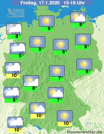Am frühen Nachmittag ist es in Deutschland noch vorwiegend freundlich bei einer Mischung aus Sonne und lockeren Wolkenfeldern. Im Osten und Süden strahlt die Sonne häufig für längere Zeit, im Westen nimmt die Bewölkung allmählich zu und an den Grenzen zu den Benelux - Staaten beginnt es im weiteren Verlauf zu tröpfeln.