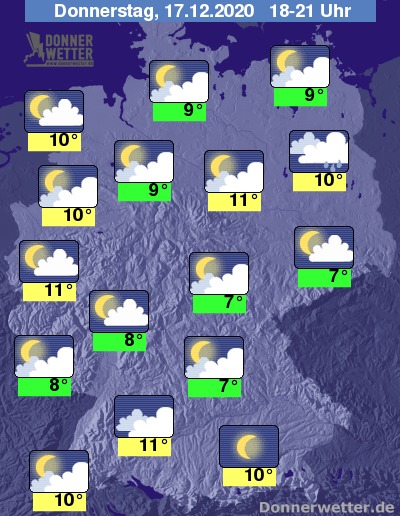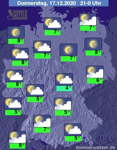 Die Temperaturen sinken von anfangs 7 bis 11 Grad, bis kurz vor Mitternacht auf 3 bis 8 Grad.
