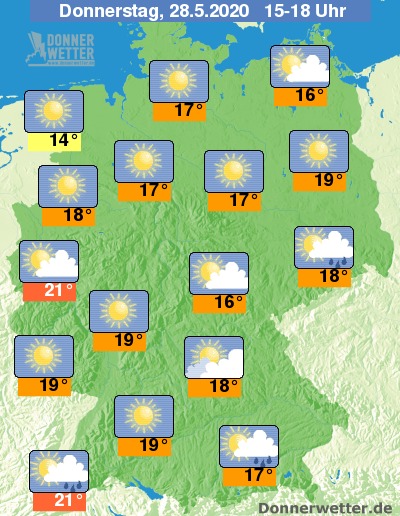Die Temperaturen bewegen sich zwischen 14 Grad an der Emsmündung und 20 Grad rund um Köln.