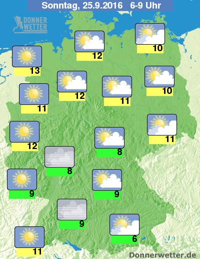 Die Temperaturen erreichen am Morgen Werte um 6 Grad C in Oberbayern und um 13 Grad C an der Nordseeküste.