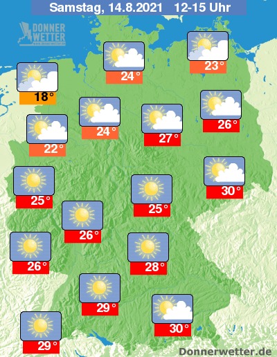 Heute Nachmittag ist es verbreitet heiter bis sonnig, im Norden ist es jedoch gebietsweise auch stark bewölkt, dabei besteht hier ein leichtes Schauerrisiko. Im übrigen Land bleibt es trocken. Die Temperatur steigt auf teils nur 18 Grad an der Nordsee und bis 30 Grad in der Lausitz.