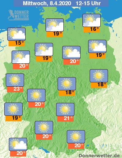 Bis zum frühen Abend werden die Haufenwolken im Westen und über den Mittelgebirgen auch mal mächtiger und können einzelne isolierte Regengüsse produzieren. Sonst ändert sich an der Wetterverteilung recht wenig. Die Temperaturen können aber gebietsweise noch etwas ansteigen.