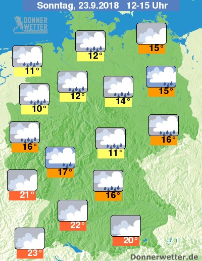 Heute Nachmittag bleibt es weitgehend bei einer geschlossenen Wolkendecke und es fällt besonders über der Nordhälfte Deutschlands häufig, zum Teil auch kräftiger und gewittriger Regen. Im Süden sind hier und da Aufheiterungen möglich, zudem bleibt es hier meist trocken. Die Temperatur liegt bei kühlen 10 Grad am Niederrhein und bis 23 Grad im Oberrheingraben.