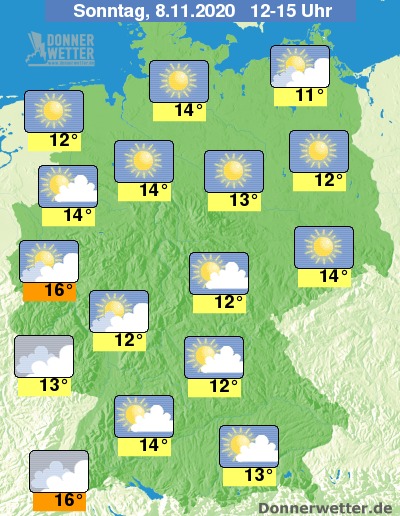 In den Nachmittagsstunden zeigt sich der Himmel im Westen und Südwesten sowie südlich der Donau überwiegend wechselnd oder stark bewölkt. Im norddeutschen Tiefland sowie entlang der Oder ist es meist heiter oder sonnig.