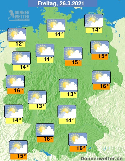 Am Freitag präsentiert sich das Wetter vielerorts heiter, hier und da auch können aber auch dichte Wolken durchziehen und es sind seltene Schauer möglich, größtenteils bleibt es allerdings trocken. Die Temperatur erreicht 12 Grad in Cuxhaven und bis 16 Grad in Stuttgart.
