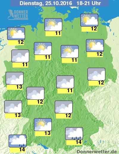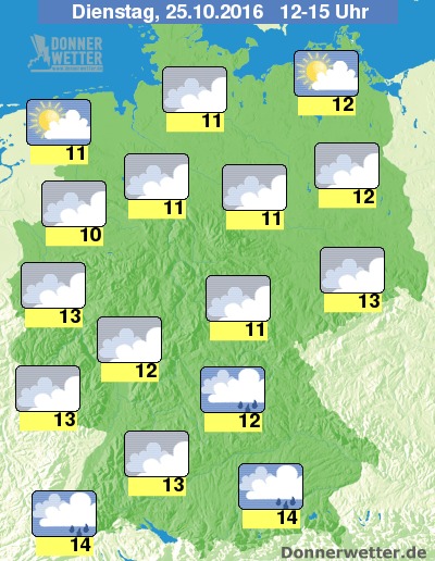 Heute Nachmittag zeigt sich im Umfeld von Nord- und Ostsee häufig die Sonne, gebietsweise ziehen hier aber auch mehr Wolken durch. Im großen Rest der Republik halten sich meist dichte Wolken aus denen im Süden zeitweise Regen fällt, sonst bleibt es jedoch weitgehend trocken bei Höchstwerten zwischen 10 und 14 Grad.