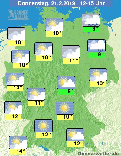Die Temperaturen liegen zwischen 8 Grad in Mecklenburg-Vorpommern und 14 Grad im Breisgau.