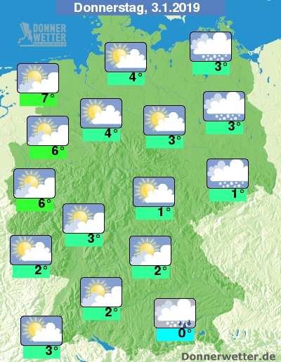 Die Höchsttemperaturen liegen meist zwischen 0 und 4 Grad. Lediglich an Rhein und Ems können 5 bis 7 Grad erreicht werden.