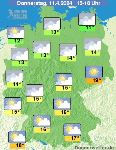 Höchstwerte am Nachmittag um 11 bis 19 Grad.