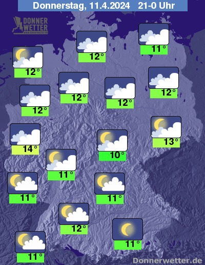 In der Nacht auf Freitag bleibt der Himmel über dem Norden und der Mitte stark bewölkt oder es ist bedeckt, Schauer sind aber weiterhin die Ausnahme. Über den südlichen Landesteilen dominiert nach wie vor lockere Bewölkung oder es ist sternenklar; lokal kann sich Nebel bilden.
