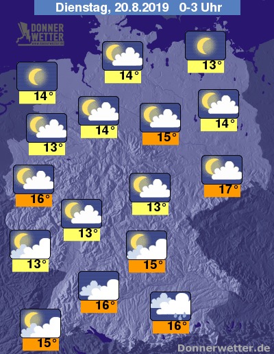 In der Nacht auf Dienstag bleibt der Himmel über weiten Ladesteilen locker bewölkt, an den Küsten funkeln die Sterne zunächst auch noch von einem meist wolkenlosen Himmel. Bei dichteren Wolken bleibt es in den nächsten Stunden alleine im Süden, am Alpenrand können zudem einzelne Schauer fallen.